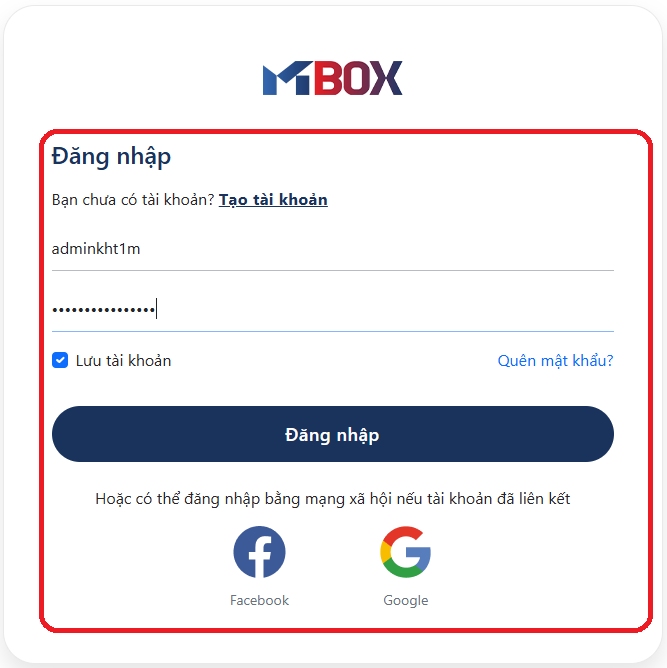 🔸 Bước 1 - Đăng nhập tài khoản ID MBOXVN