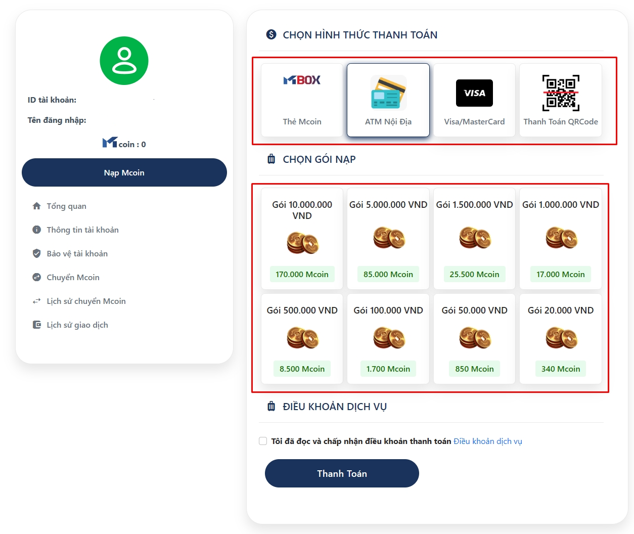 Mcoin là đơn vị thanh toán dùng chung để nạp vào các game thuộc hệ thống MboxVN.